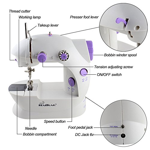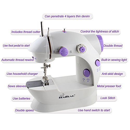 -. Feature : Mini 2-speed sewing machine offers double thread and perfect stitch control / For anything from silk to denim; hand switch or foot pedal to start / Top drop-in bobbin ensures easy threading / This sewing machine is basic sewing machine,small and portable, with easy-to-use features,suit for new sewing machine user. / This Miniy Sewing Machine is small portable and basic , with easy-to-use features ,suit for sewing freshman, Recommended for ages 13 and up,A simple family life sewing machine