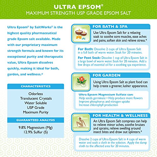 EXCEPTIONAL PURITY AND THERAPEUTIC VALUE; Ultra Epsom Salt is the highest quality pharmaceutical (USP) grade Magnesium Sulfate available