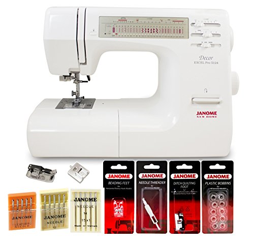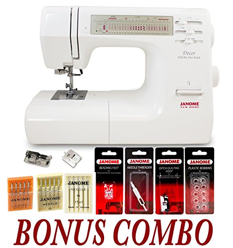 -. Binding : Office Product -. Brand : Janome -. EAN : 0675900906518 -. Feature : Designed for specialized and quality home décor stitching / 7-piece feed dog / The 5124 uses automatic controls to stop the one-step buttonholer as soon as the stitch job is completed. / The needle mechanism is designed to halt in the uppermost position every time it stops, and can be pivoted using the needle up/down control effortlessly, thus saving plenty of your time in the process of sewing. -. Label : Janome -. Manufacturer : Janome -. MPN : 5124 -. PackageQuantity : 1 -. PartNumber : 5124 -. ProductGroup : Art and Craft Supply -. ProductTypeName : ART_SUPPLIES -. Publisher : Janome -. Studio : Janome -. Title : Janome 5124 Sewing Machine With Bonus Accessories -. UPC : 675900906518