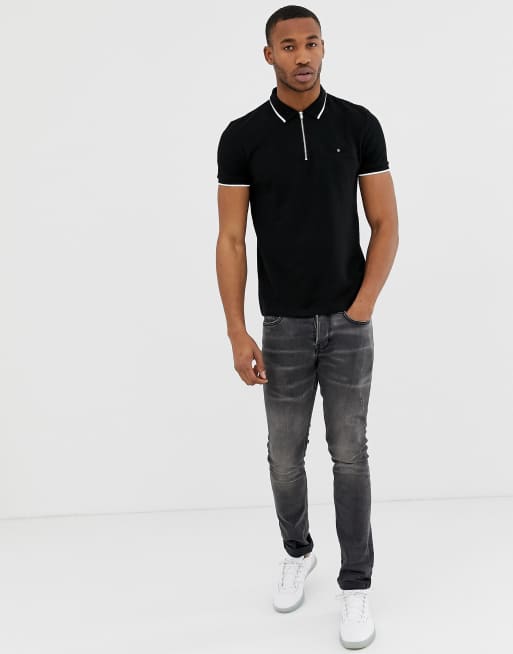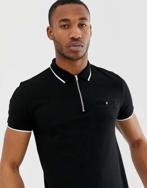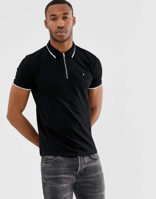 New Look polo with tipping in black