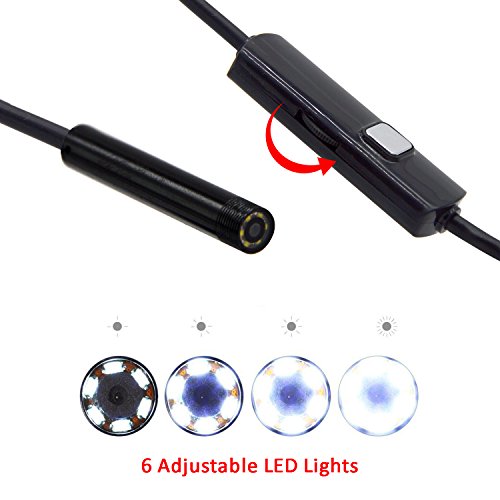 Built-in 6 LED light (adjustable), the imaging is still clear in the dark so that work in some area without enough light. It is IP67 Waterproof Camera with a Micro USB line