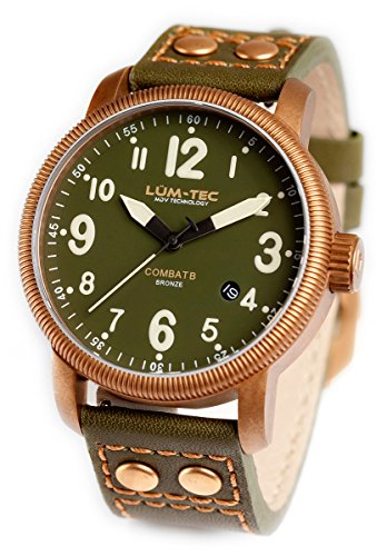-. Feature : 4 straps includedBlack heavy NATO with bronzed rings. OD green heavy NATO with bronzed rings. White heavy NATO with bronzed rings. Aviator style riveted custom leather strap with bronzed rivets and buckle. / Miyota Japan 9015 28,800 BPH automatic movement with handwinding and hack feature. / Threaded 316L Stainless steel caseback with sapphire. / LUM-TEC MDV Technology®.