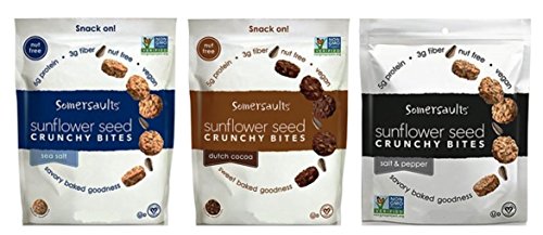 Somersaults Nut Free 100% Natural Sunflower Seed Snacks 3 Flavor Variety Bundle: (1) Somersaults Pacific Sea Salt Crunchy Nuggets, (1) Somersaults Dutch...