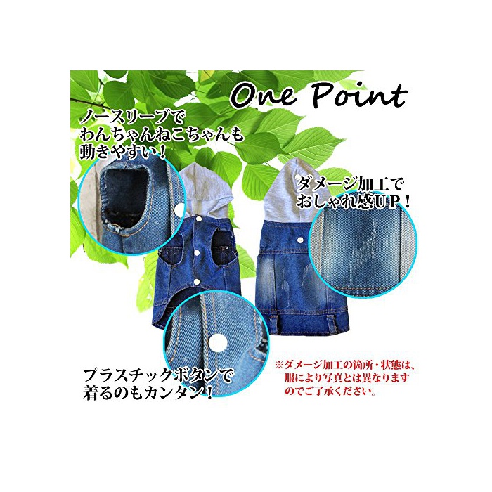 왕쨩(강아지) 고양이상도 멋쟁이에게 외출,정평(스테디셀러)의 후드 부착 데님 재킷.노슬리브 (이므로)그래서 움직이기 쉽고, 데미지 가공을 해 멋쟁이감을 UP!산책 등의 외출이나 실내복으로도 마스트인 아이템입니다!