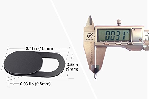 -. Feature : Protecting Your Digital Life: Covers your webcam when not in use, and prevents web hackers from Spying on you. It is perfect to provide P.R.Ivacy, security and peace of mind to individuals, groups, organizations, companies and governments. / Minimalism & Skin-touch Design: Measuring only 0.031in (0.8mm) thick, It does not prevent laptops from closing perfectly. Surface is adopts special coating process, makes it even more comfortable. / Broad Compatibility: Compatible with mac, macbook, macbook pro, surfcase, surfcase pro, laptops, Android tablet, iPhone, iPad and many more smartphone. Does not interfere with web use or indicator light. It does not damage your device in any way. / Durable and Easy to Use: (3)Black units with High-grade durable plastic, Adheres with double sided 3M tape. Simply align to your webcam, attach and press firmly for 10 - 15 seconds for a strong, but non-permanent seal. / 100% Satisfaction Guaranty: If you aren't completely satisfied with your purchase, just contact us and we'll refund your order.