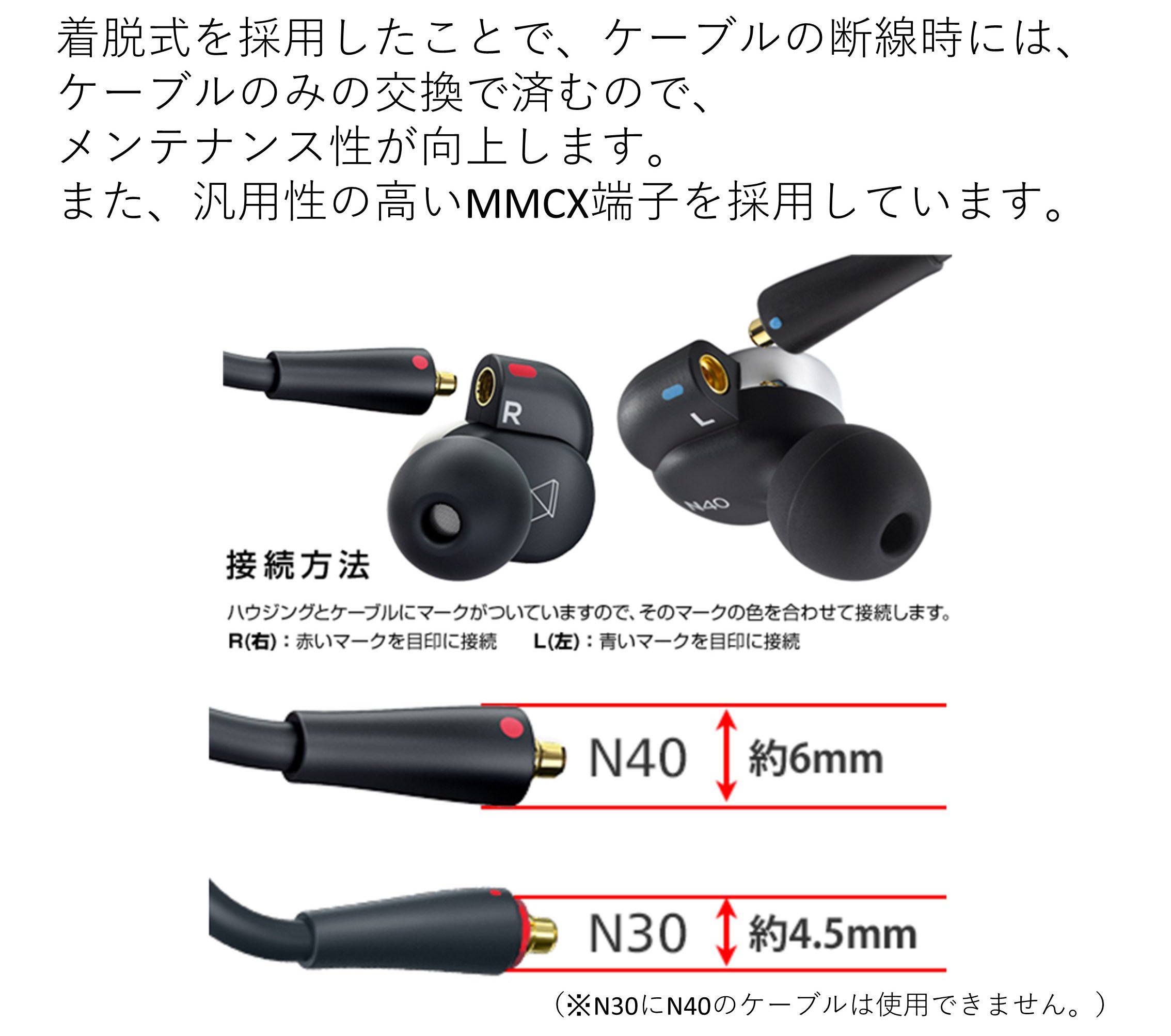 Maintenance is improved by adopting cable detachable type (mmcx terminal).