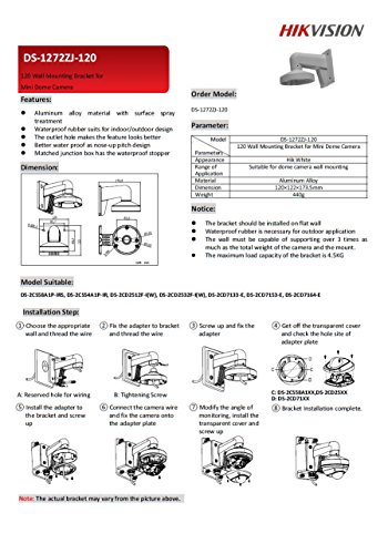 DS-1272ZJ-120 PC120 Wall Mount Bracket for Hikvision Mini Dome IP Camera DS-2CD25x2
