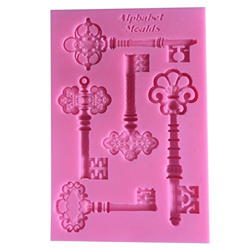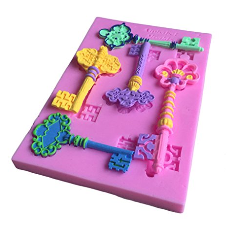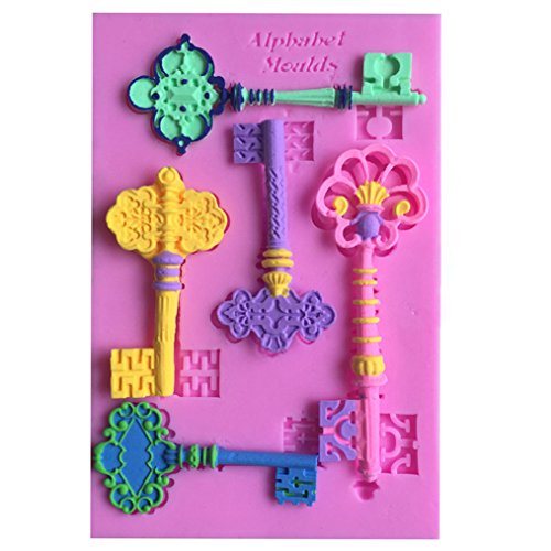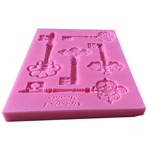 FLY DIY Kitchen Baking Tools 5PCS Keys Shape Silicone Cake Mold,Pink