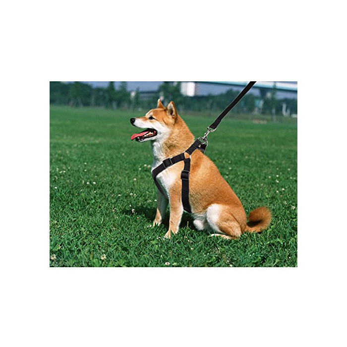 Petacc 견용하네스 리드 세트 나일론제 내구성 튼튼함 잡아끌어 방지 환기성 하네스 조절 가능 츄우오우대학형 견를 향해 30-45KG대응 (블랙)