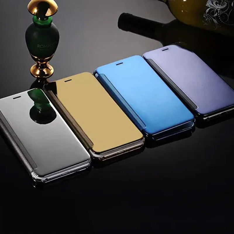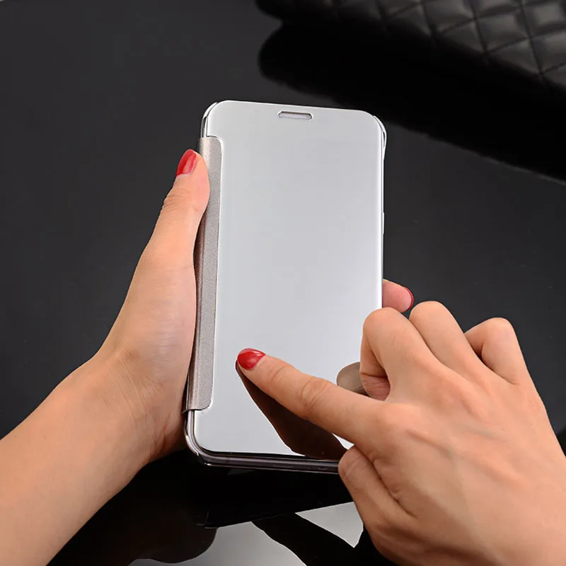 Size:Luxury Flip PU Leather Window View Clear Plastic Mirror Cover Fundas