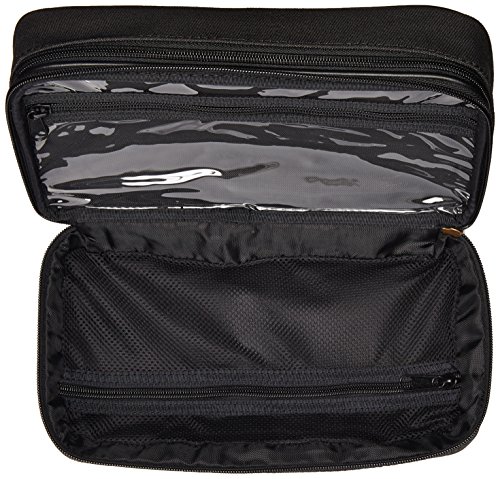 -. Feature : Interior Details :2 Compartments: One with 1 PVC Zipper Pocket, 1 Mesh Zipper Pocket; One with 3 Slip Pockets with Elastic, 2 Pockets / Zipper Closure / 10.5"L x 4.5"W x 5.5"H
