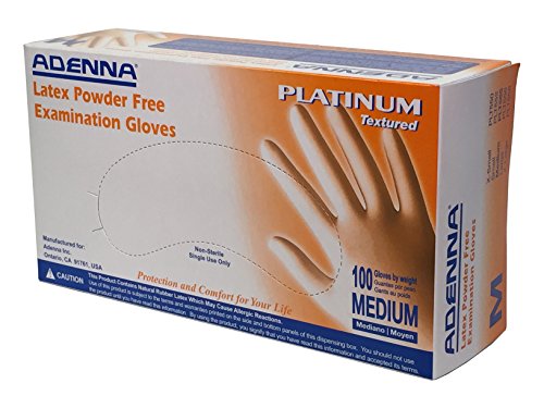Adenna Platinum 5.5 mil Latex Powder Free Exam Gloves (White, Medium) Box of 100