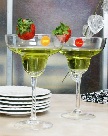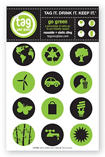 Go Green - Wine, Champagne, Beer, Martini and Cocktail Glass Tags that work great on Stemless Glassware - 2 sets of 12 - charming, reusable, hip static cling drink markers that serve a purpose