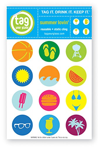 Summer Lovin - Wine, Champagne, Beer, Martini and Cocktail Glass Tags that work great on Stemless Glassware - 2 sets of 12 - charming, reusable, hip static cling drink markers that serve a purpose