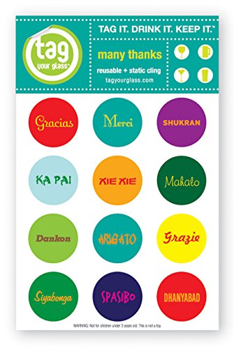 Many Thanks - Wine, Champagne, Beer, Martini and Cocktail Glass Tags that work great on Stemless Glassware - 2 sets of 12 - charming, reusable, hip static cling drink markers that serve a purpose