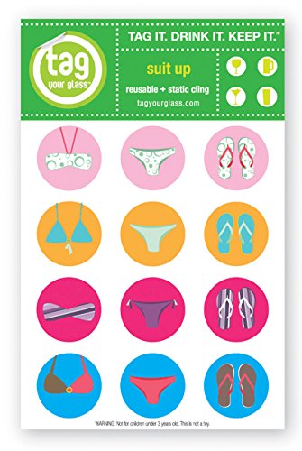 Swimming Suit - Wine, Champagne, Beer, Martini and Cocktail Glass Tags that work great on Stemless Glassware - 2 sets of 12 - charming, reusable, hip static cling drink markers that serve a purpose