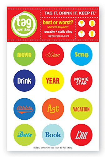 Best or Worst? - Wine, Champagne, Beer, Martini and Cocktail Glass Tags that work great on Stemless Glassware - 2 sets of 12 - charming, reusable, hip static cling drink markers that serve a purpose