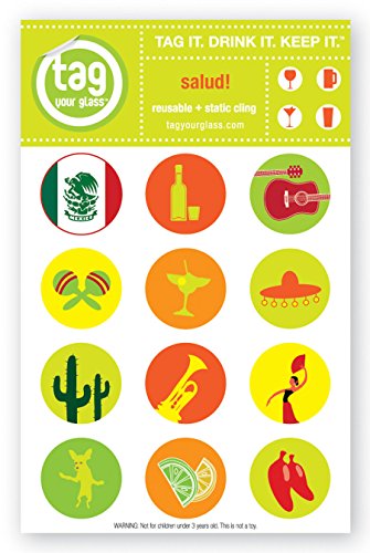 Salud - Wine, Champagne, Beer, Martini and Cocktail Glass Tags that work great on Stemless Glassware - 2 sets of 12 - charming, reusable, hip static cling drink markers that serve a purpose