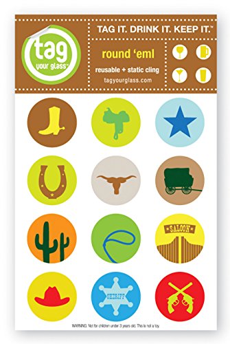 Country Western - Wine, Champagne, Beer, Martini and Cocktail Glass Tags that work great on Stemless Glassware - 2 sets of 12 - charming, reusable, hip static cling drink markers that serve a purpose