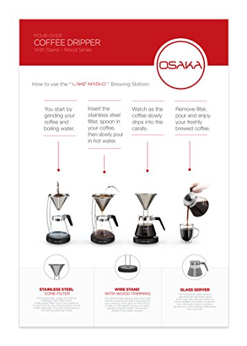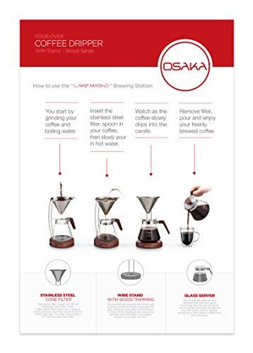 -. Brand : Osaka -. Feature : STAINLESS STEEL CONE FILTER - The double filter is laser-cut with an additional mesh inside. Unlike paper filters which are a waste of money and rob you of coffee's natural essential oils, this will provide a clear rich tasting balanced coffee. / FULL BREWING SET - Stainless steel filter, waterproofed wood and metal stand, glass carafe with lid. Everything you need for a manually home brewed pour over coffee. / BOROSILICATE GLASS CARAFE - The 20oz carafe is made from borosilicate glass, which is resistant to thermal shock, it also does not absorb any odors, chemicals or residue. Giving you a fresh tasting coffee every time. / WOOD SERIES - Great gift idea for the Holidays. This aesthetically beautiful series has a range of wood colors to choose from, so whatever your home decor is this will fit right in. / QUALITY GUARANTEED - Create a delicious coffee like a pro, with our detailed instructions and tips. For any defects in the materials or craftsmanship of any Osaka product, please contact our customer service team and we will be glad to assist you. -. Label : Osaka -. Manufacturer : Osaka -. ProductGroup : Kitchen -. ProductTypeName : KITCHEN -. Publisher : Osaka -. Studio : Osaka -. Title : Osaka Pour-Over Coffee Dripper with Wood Stand - Full Brewing Set for a Homemade Pourover - 20oz. Capacity. "Lake Mashu"