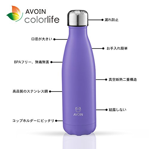 -. Title : AVOIN colorlife 水筒 ステンレス 真空断熱 保温保冷 直飲み スポーツボトル 500ml 多色