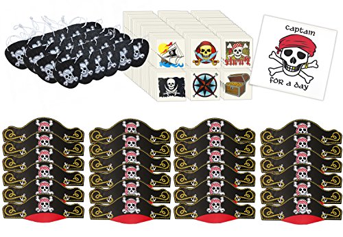 -. Binding : Toy -. Brand : Well Pack Box -. EAN : 0615867201677 -. Feature : Great Package For 24 Pirates. 24 Hats 24 Eye Patches and 144 Temporary Pirate Tatoos / 24 Paper Pirate Hats Perfect for Pirate Theme Birthday Parties, Halloween or a masquerade party / 24 Felt Pirate Eye Patches With White Skull and Cross Bones Design. Elastic strap to wear patch around head - One size Fits All. / 144 Assorted Pirate Design Tattoos Washes Off With Soap & Water Plus A Single Captain Sticker / Here at WellPackBox we search the world for cool stuff to put in unique boxes and other containers. Easy Returns. -. IsAdultProduct : 0 -. Label : Well Pack Box -. Manufacturer : Well Pack Box -. MPN : 714 Pirate Hat Eye Tattoo Kit -. PartNumber : 714 Pirate Hat Eye Tattoo Kit -. ProductGroup : Toy -. ProductTypeName : TOYS_AND_GAMES -. Publisher : Well Pack Box -. Studio : Well Pack Box -. Title : WellPackBox 24 Pirate Party Supplies Pack 24 Hats 24 Felt Eye Patches 144 Kids Temporary Tattoos Plus a Sticker. -. UPC : 615867201677