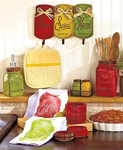 Wooden Red Yellow Green Rustic Home Sweet Home Metal Hooks Rack Utensil Holder Towel Hanger Wall Hanging Plaque Primitive Mason Jar Tuscan French Country Kitchen Decor