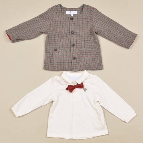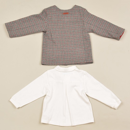 체크 자가드의 자켓과 티셔츠입니다