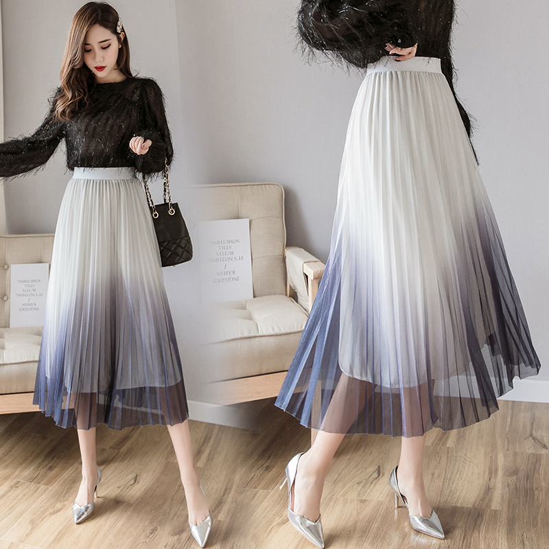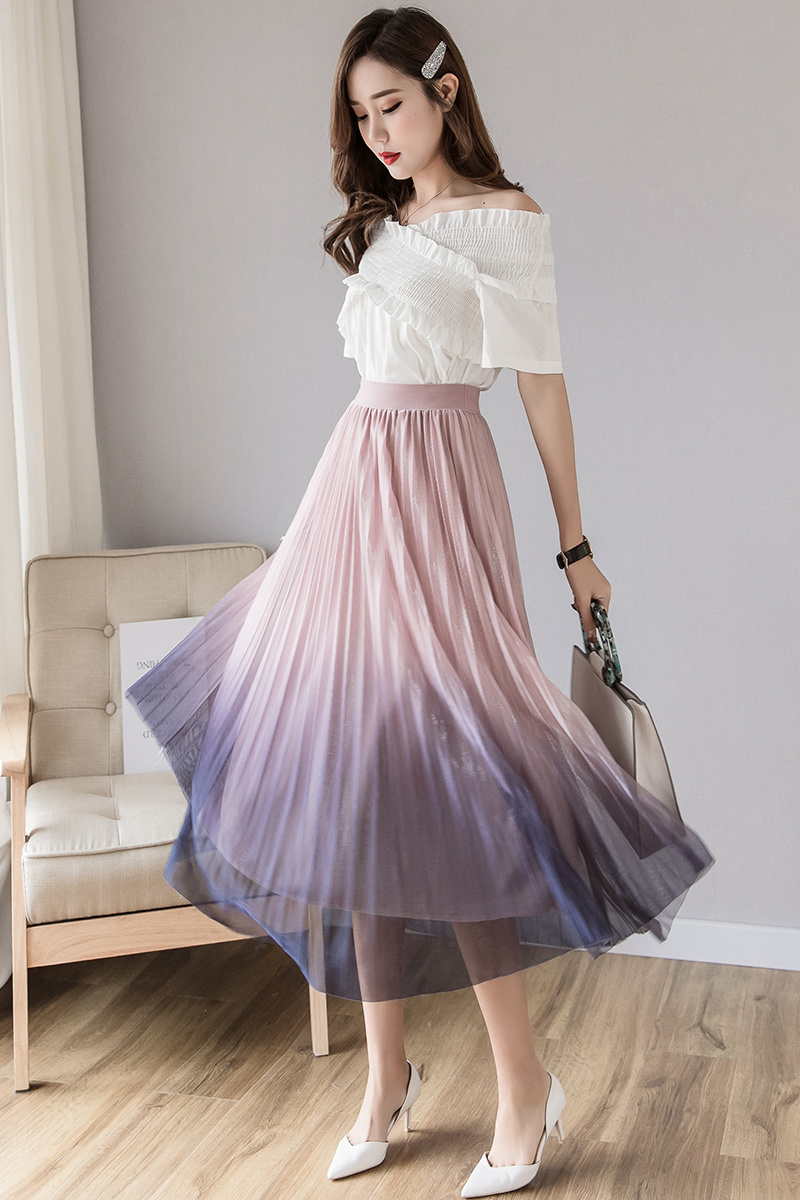 大人可愛い、グラデーションが特徴のロング丈チュールスカートです。