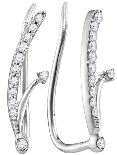 10k White Gold Round Diamond Curved Climber Earrings (1/10 Cttw)