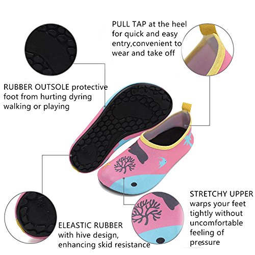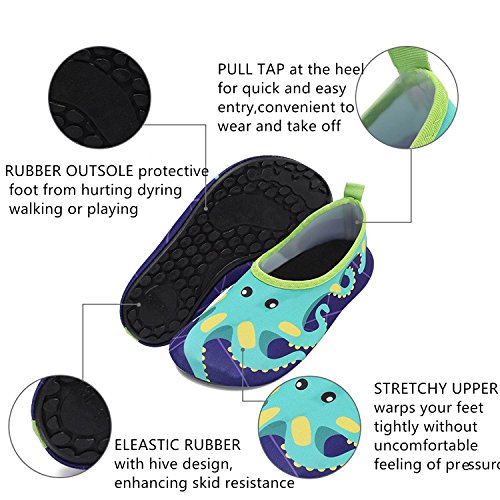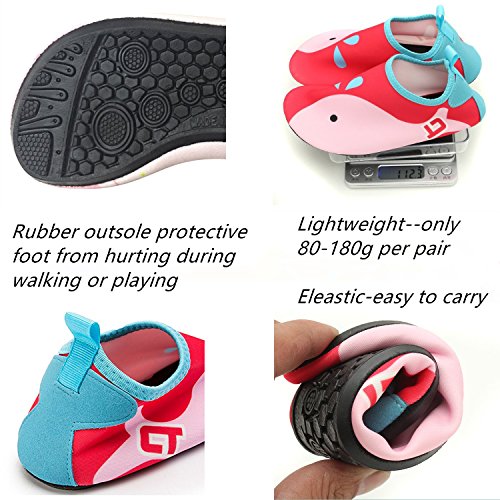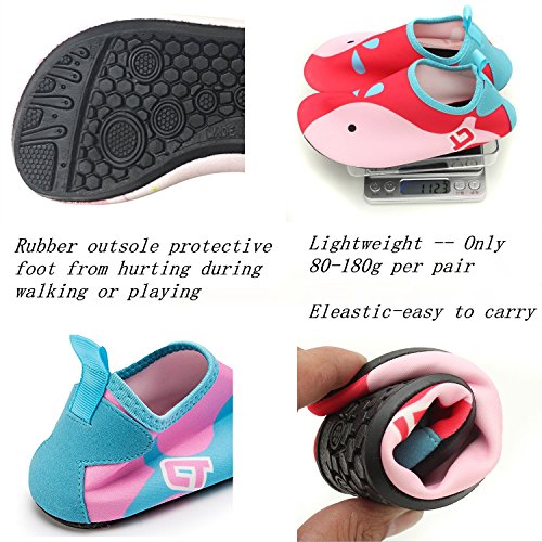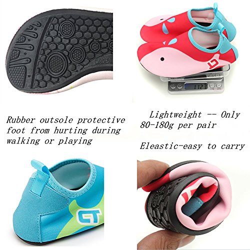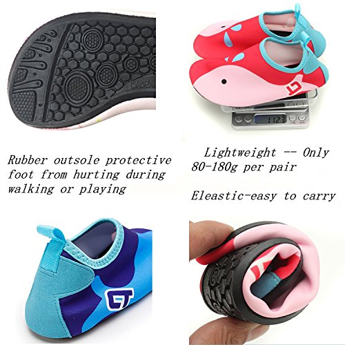 √ Lightweight -- Only 80-180g per pair √ Safety -- protective kids barefoot from hurting during walking or playing in anywhere, anytime √ Quick-dry -- Elastic upper can fast draining and cross ventilation,a perfect fold-and-go portability