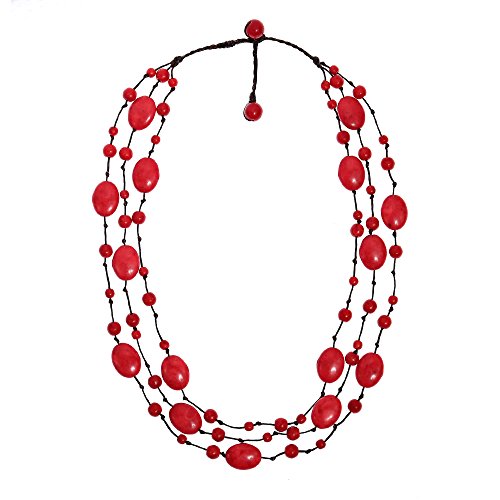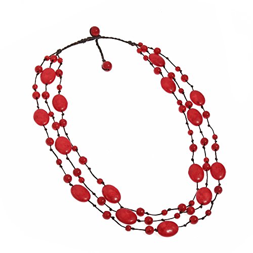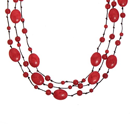 This layer necklace that features vibrant reconstructed red coral stone on cotton rope strand can surely add that bold glow to your outfit. This necklace features delicate handmade construction creating an authentic, unique style. PLEASE NOTE: Pictures are not true to size, see dimension for actual size.Includes an original AERAVIDA organza jewelry pouch (comes in various colors), also handmade by our Artisans. Perfect for gift giving to someone special or keep for yourself!