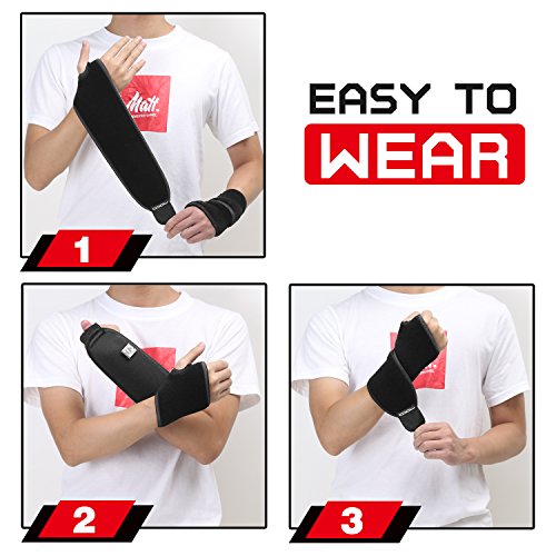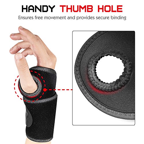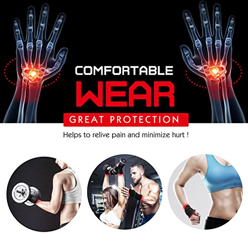 Made of premium neoprene, great stitching. Soft and antimicrobial, comfotable protective. One pair, fits left hand and right hand. One size for all, men and women, adults and youth. Adjustable hook loop, fits snugly and firmly. Custom designed thumb opening, free range of motion. Provides dependable support for weak or injured wrists. Protects the wrist from further strain or fatigue. Helps relieve soreness and pain on the wrist area. Great for basketball, badminton, workout more. USER MANUAL: