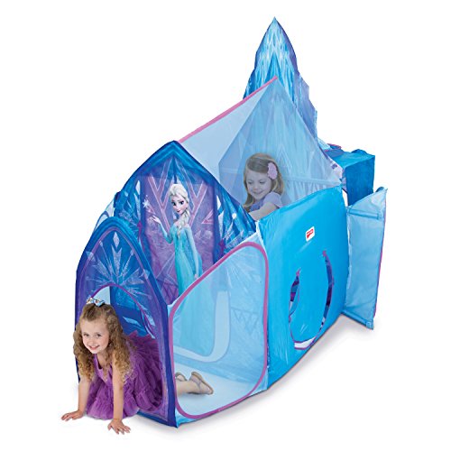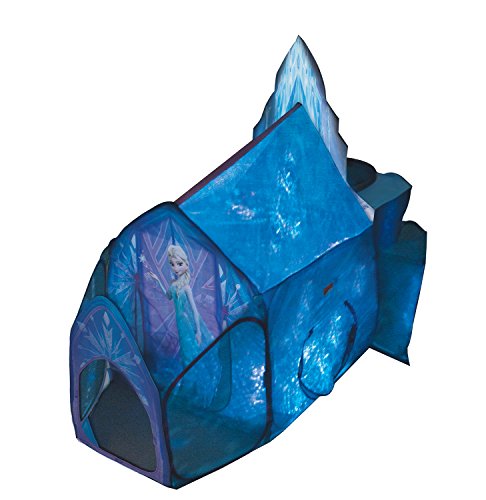 -. Feature : The Ice Castle lights up with the push of a button from the "sparkle light" / Iridescent mesh see-through panels allow for peek-through fun / 360 Degree play environment / Includes Elsa's Sparkle Light / Patented Twist and Fold technology erects the Ice Castle in an instant!