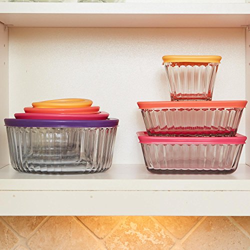 Anchor Hocking Classic Embossed Glass Food Storage Containers with Lids, Multi Citrus, 16-Piece Set
