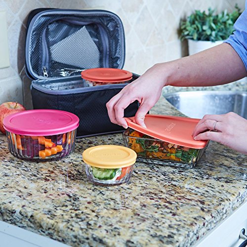 Set contains: (1) 1-cup round , (2) 2-cup round, (1) 4-cup round, (1) 7-cup round, (1) 1-7/8-cup rectangle, (1) 4-3/4-cup square and (1) 6-cup rectangle all with Mixed Citrus colored lids
