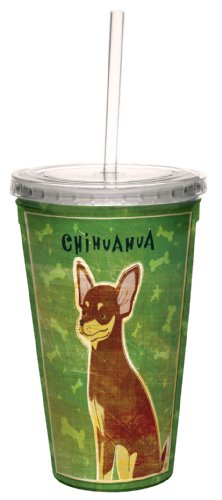 Tree-Free Greetings strives to use the most eco friendly materials and processes possible. Printed and assembled in the USA, The Tree-Free Greetings 16 Ounce Artful Traveler Double-Walled Cool Cup with Reusable Straw is vibrantly printed with hard to find chocolate and tan Chihuahua themed art by John W. Golden and is great for everyday use. It is reusable therefore eliminating any disposable paper or Styrofoam cup waste. BPA free and Proposition 65 compliant, this beautiful and durable acrylic cool cup comes with a reusable straw, resists condensation and holds 16 ounces of your favorite cold beverage; hand washing is recommended. The Tree-Free Greetings 16 Ounce Artful Traveler Double-Walled Cool Cup with Reusable Straw makes the perfect gift or souvenir for any occasion. Save trees, spread joy, buy a Tree-Free earth-friendly gift today.Feature