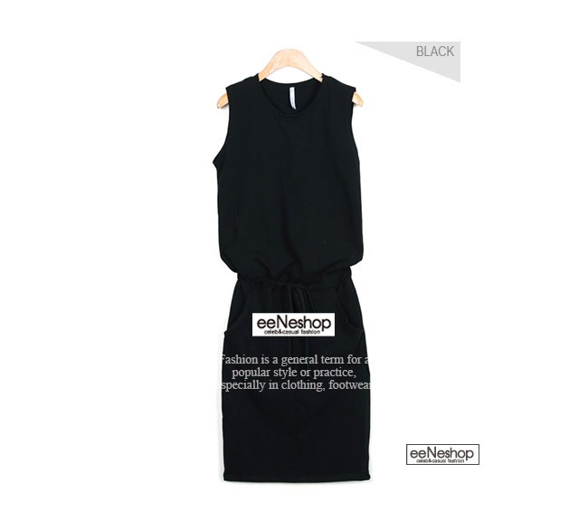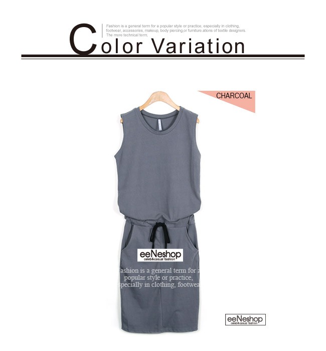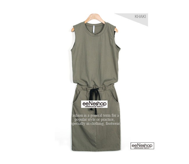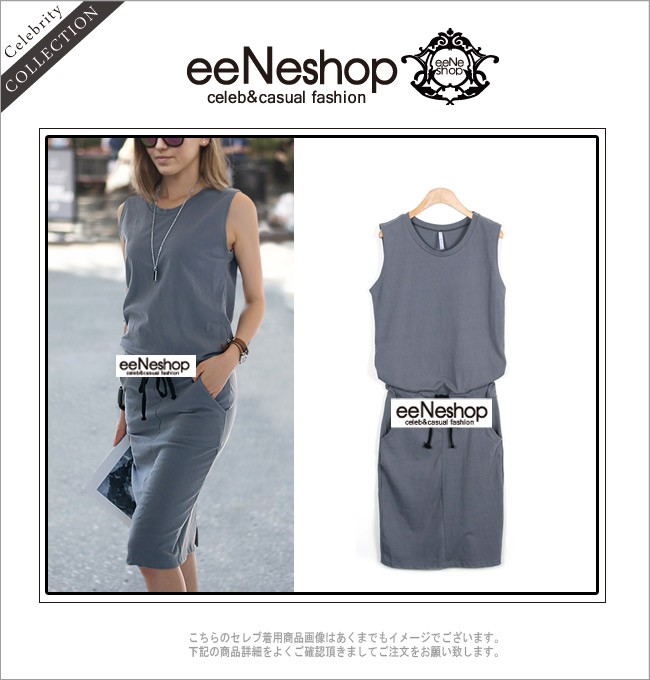 ノースリーブ ウエストリボン ワンピース