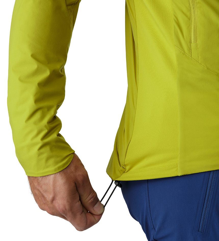 · 몸통에는 발수성능과 방풍을 위한 Tyono™ 20 원단을 사용하였으며 사이드 패널에는 신축성이 좋으며 방취 및 수분조절능력이 뛰어난 Torrent™을 사용 (Composite construction)