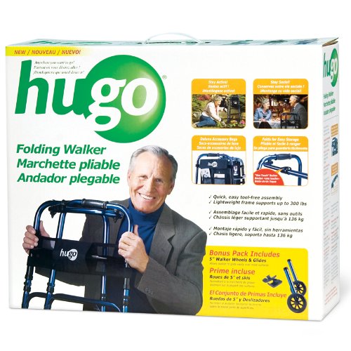 - Title : Hugo Mobility 770-260 Adjustable Folding Walker with Bonus Wheels and Plastic Glides, Sapphire Blue, 5 Inch