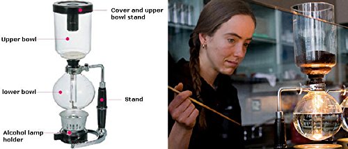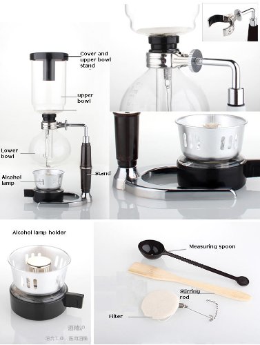 A vacuum coffee maker brews coffee using two chambers where vapor pressure and vacuum produce coffee.