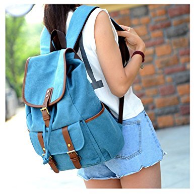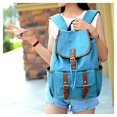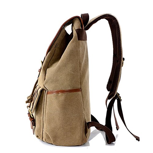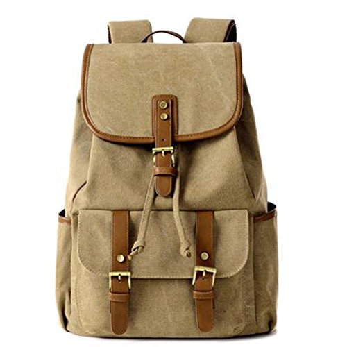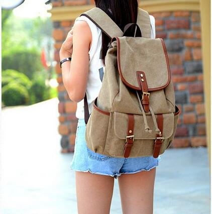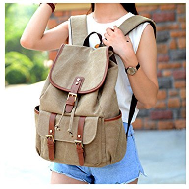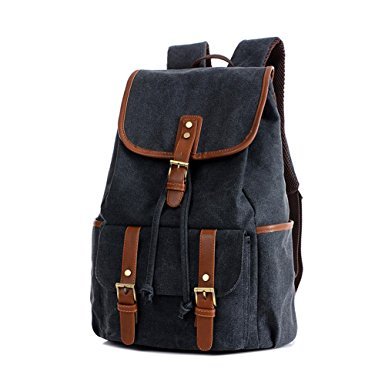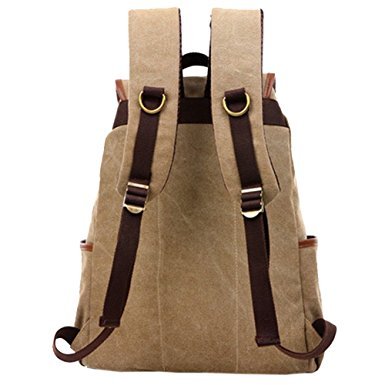 -. Title : Vintage Canvas Leather Backpack Rucksack Casual Daypacks Bookbags