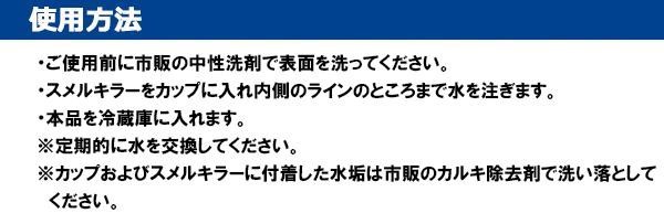スメルキラーの冷蔵庫用。使用方法はカップに水を注いで冷蔵庫内にセットするだけでOK!!