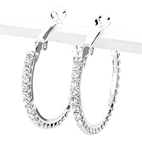 1 ¼ inch diameter narrow clear rhinestone hoop earrings in silver-tone.