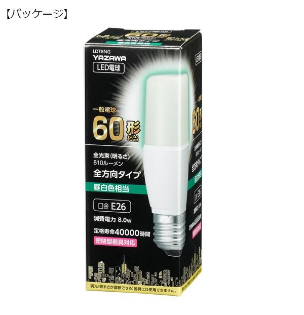 | 仕様 | 口金:E26 定格電圧:100V 定格消費電力:8.0W 定格入力電流:0.134A 光源色:昼白色 全光束:810lm 色温度:5000K 調光対応:不可 設計寿命:40000h 密閉型器具:対応 取扱説明書(パッケージ記載) |