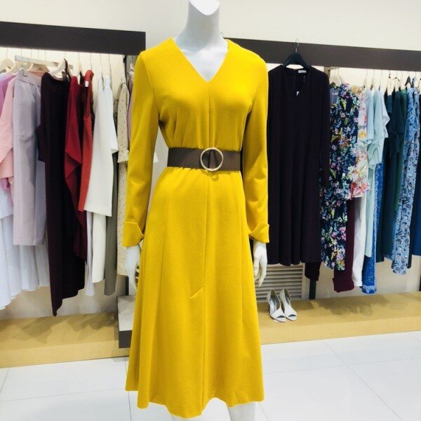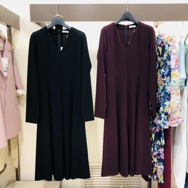 브이넥라인과 소매라인이 포인트 이며 여성스럽고 세련된 느낌을 주고 텐션감이 좋으며 다양한 스타일을 낼수있는 베스트 아이템인 원피스 입니다