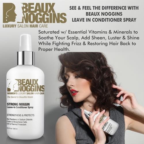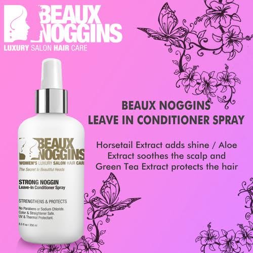 BEAUX NOGGINS Strong Leave-In Conditioner is a revolutionary leave-in conditioner that creates shine without weight. Strengthens, smooths and detangles. Horsetail Extract adds shine, Aloe Extract soothes the scalp, and Green Tea Extract protects.