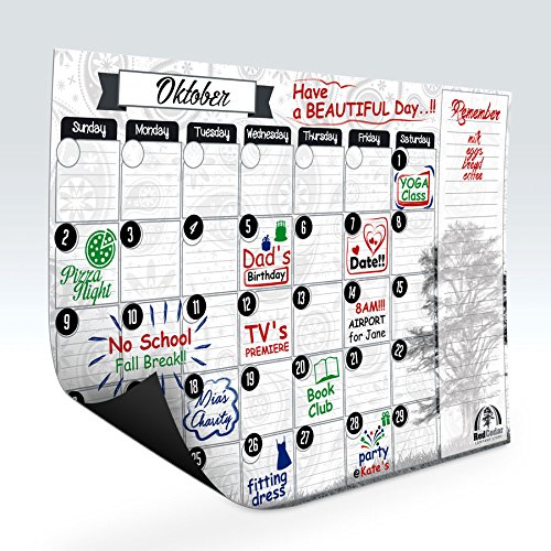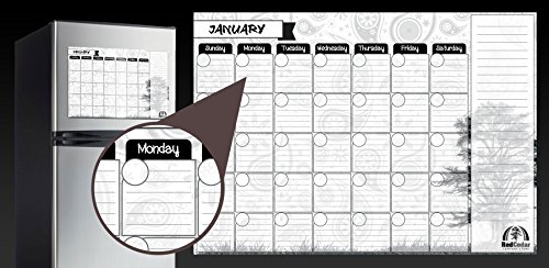 -. Feature : ALL YOU NEED TO GET ORGANIZED. Very useful to keep your home, family, classroom, office or restaurant organized. / CUSTOM BEAUTIFUL DESIGN TO COMPLIMENT ANY DECOR. Beautiful background graphic to compliment your colorful additions each day. Functional, yet aesthetically pleasing. / HIGH QUALITY CONSTRUCTION. Write, erase, rewrite, clean and reuse. 100% Guarantee. We stand behind our products for you complete satisfaction! / 12" x 17" GENEROUS SIZE. Plenty of room on each day to write multiple events or appointments. The perfect size for any type of refrigerator or file cabinet. / FIVE WEEKS PLUS ADDITIONAL SPACE FOR MONTHS THAT HAVE PARTIAL SIXTH WEEK.