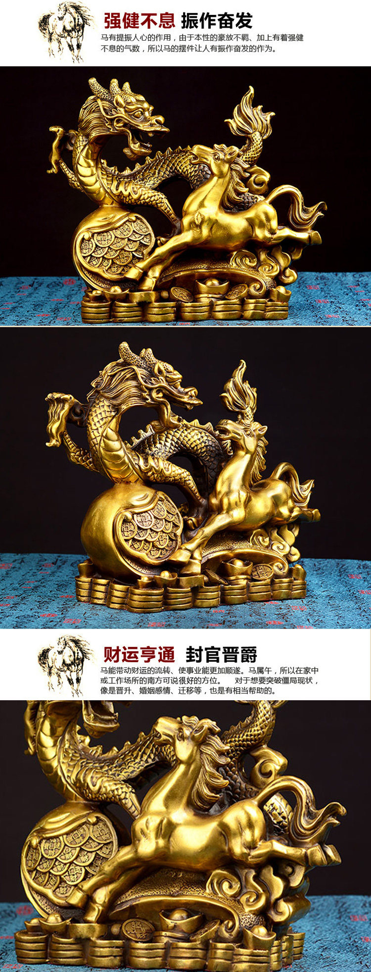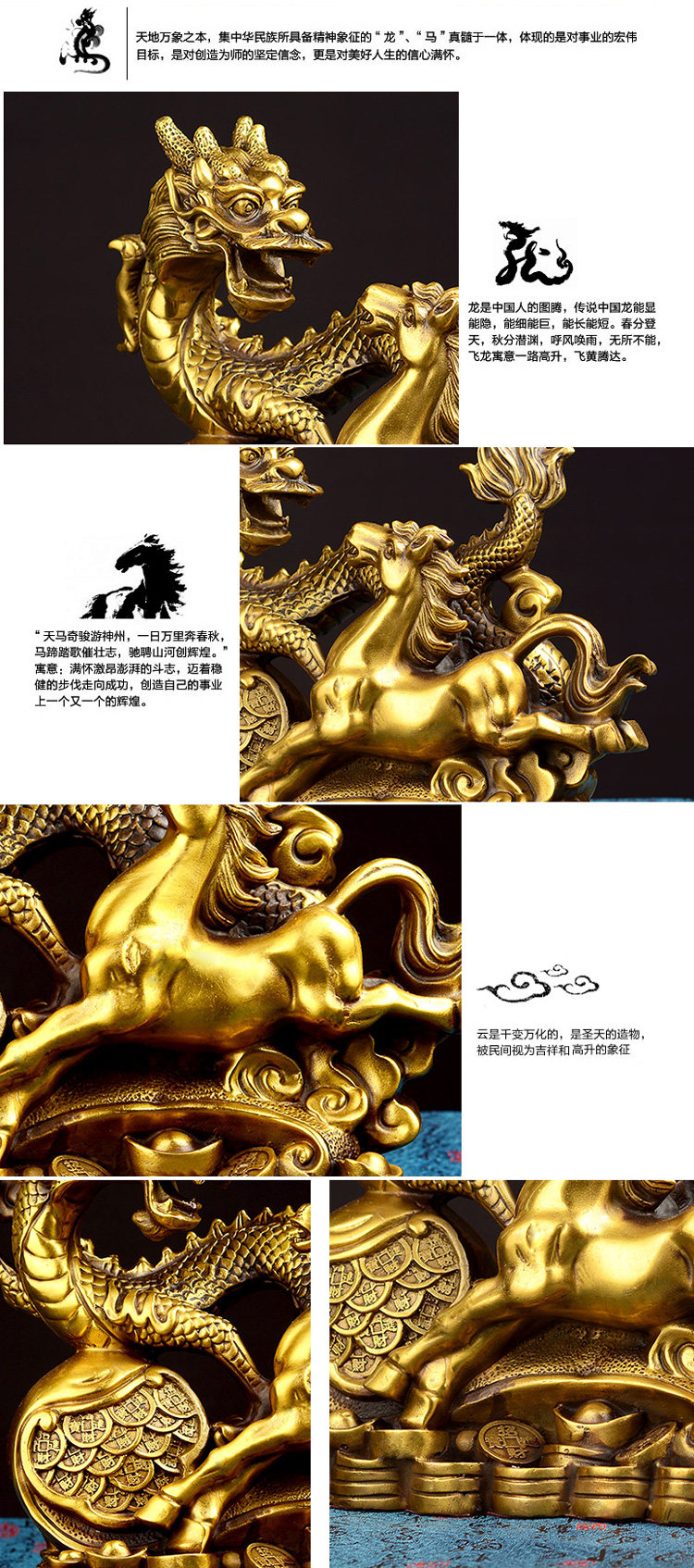 纯铜龙马摆件 龙马精神 马到成功 家居装饰饰品书房办公室