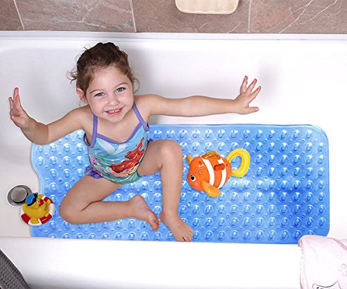 Non-Slip Sturdy PVC Construction Long Wimaha Bathtub Mats: made of eco-friendly PVC anti-slip material, powerful grips offer 360 degree safety protection for users